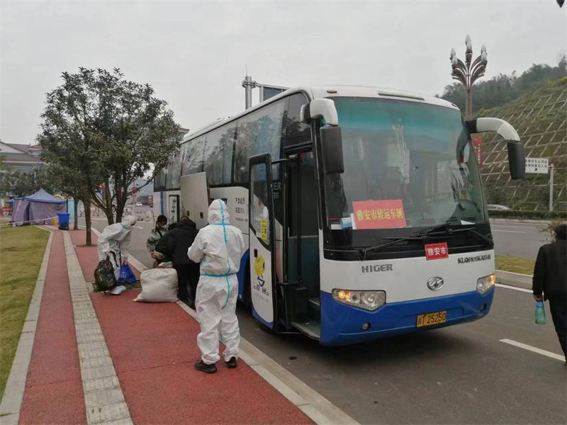 受疫情影响我省大量务工人员滞留西藏、新疆,四川省为解决我省经商务工人员返乡需求主动对接两地开行四川返乡专列,按照疫情防控要求在专列开行期间抵蓉后,由各市州调派运力采用接力闭环运输的方式将返乡人员纳入疫情防控管理。市交通局安排蜀通公司负责我市外省返雅务工人员的闭环转运工作,接到任务后公司马上制定了转运方案和安全、防疫保障措施,创建了工作专班确保该阶段性工作顺利完成。