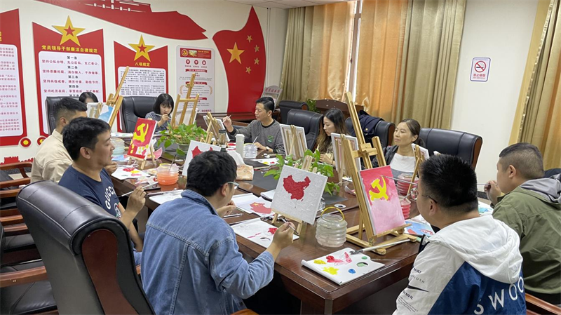 活动中,大家兴致勃勃地领取了画笔、颜料、油画框等工具,即刻投入到绘画状态中。他们一笔一划仔细斟酌、认真构思,充分发挥想象,顺利获得精心的布局、丰富的色彩,绘出自己热爱党的心声,勾勒出红色印记,用色彩点燃爱国情怀,为迎接党的二十大胜利召开献上一份真挚的祝福。