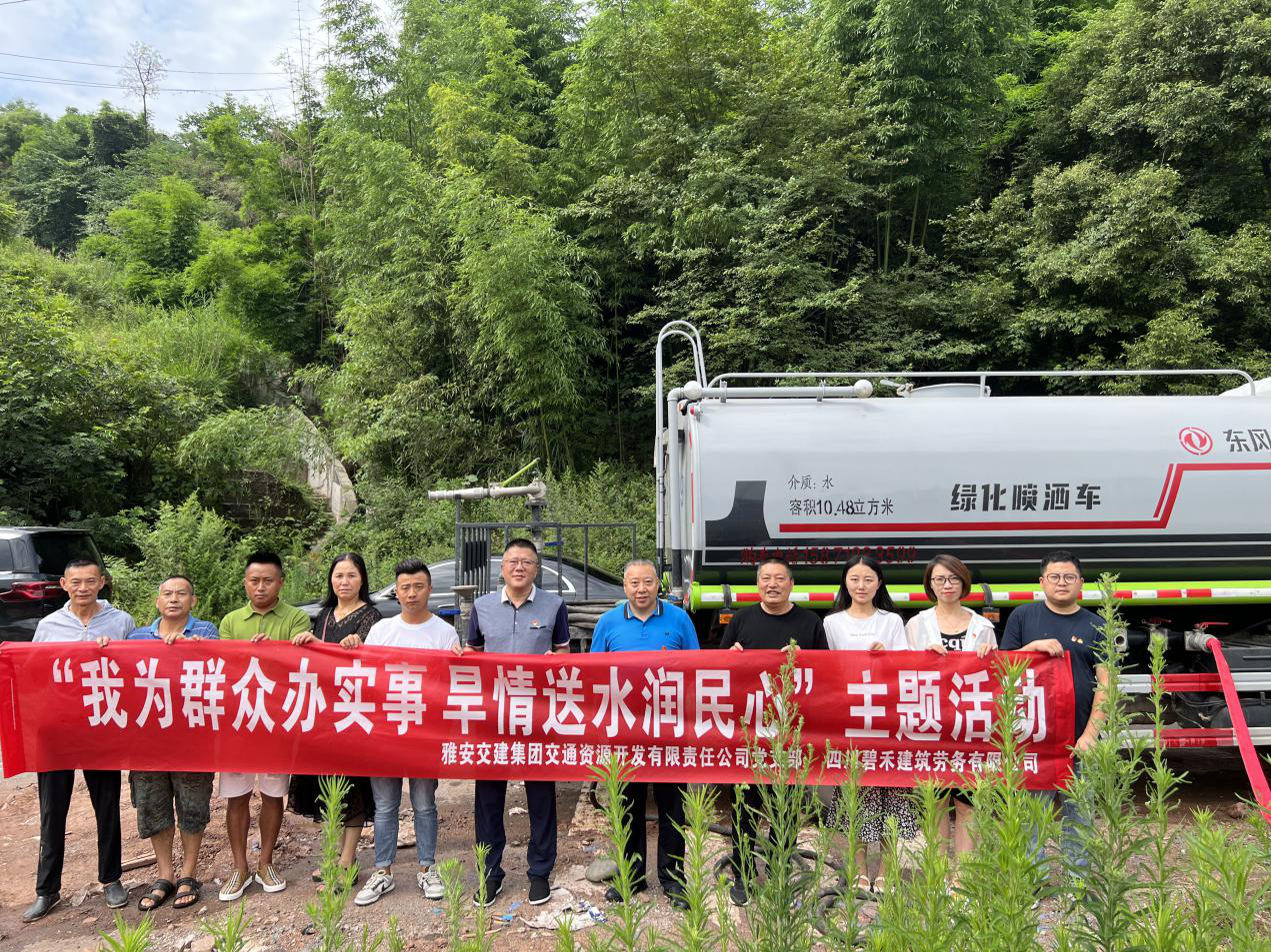 7月7日,亿万先生MR集团交通资源开发有限责任公司联合四川碧禾建筑劳务有限公司在金鸡关村举行“我为群众办实事 旱情送水润民心”活动启动仪式。