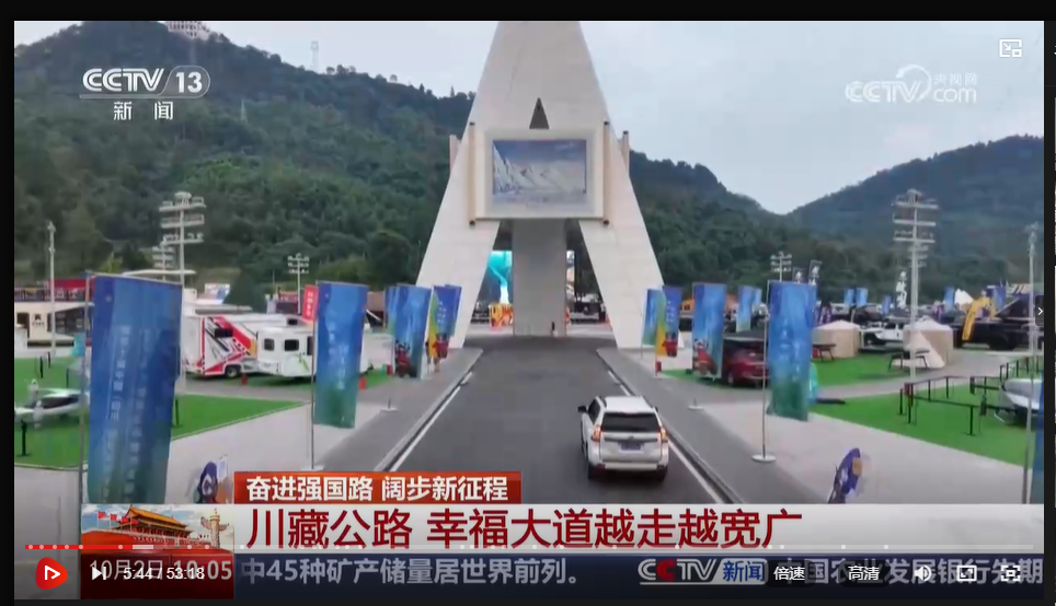 为庆祝新中国创建75周年,展现中国式现代化进程中的开展成就。10月2日,中央广播电视总台推出《[奋进强国路 阔步新征程]川藏公路 幸福大道越走越宽广》特别节目,对大本营基本情况及正在召开的全国装备展销会进行了报道。
