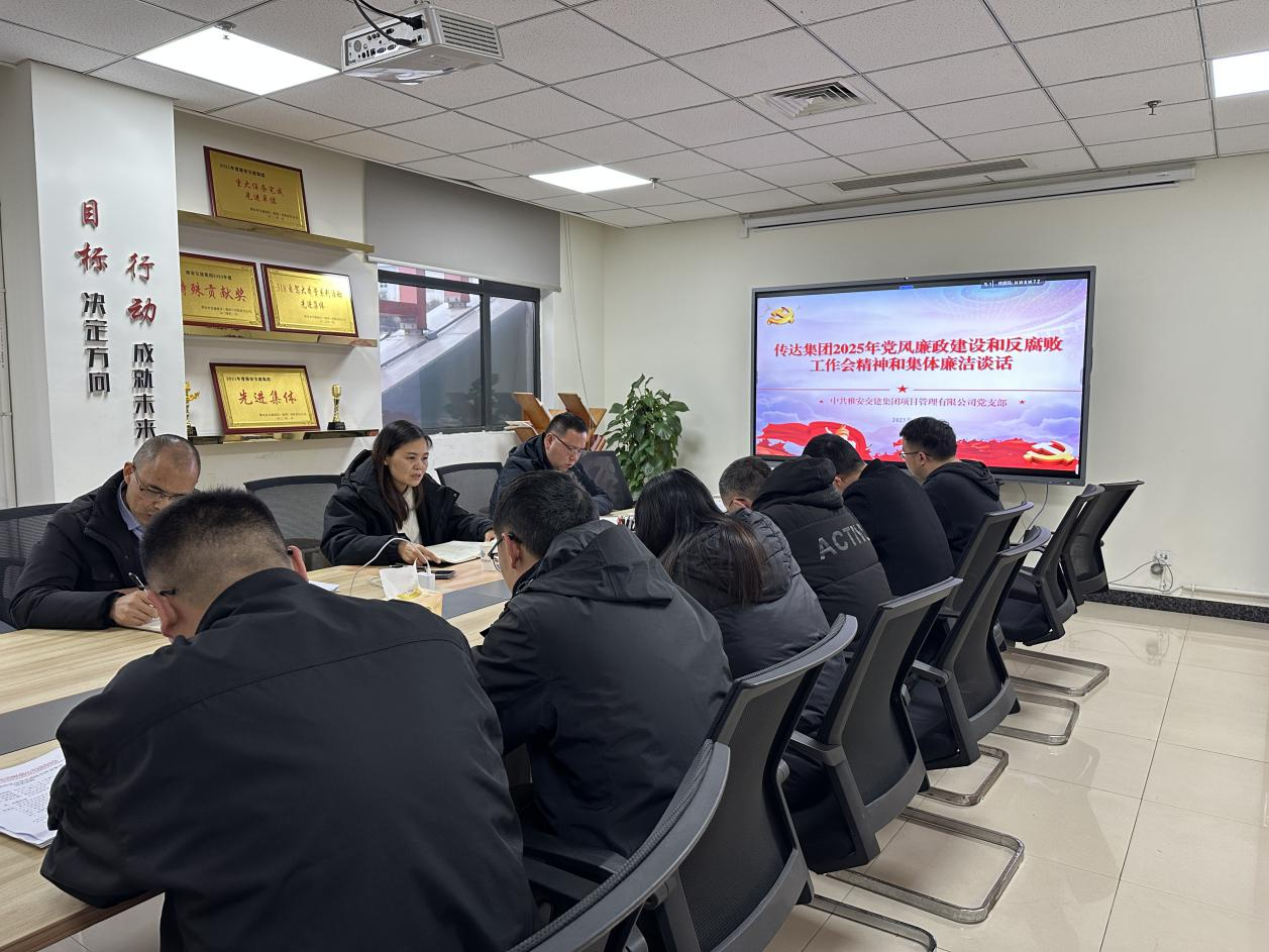 会议传达学习了中纪委二十届四次全会、省纪委十二届四次全会、市纪委五届五次全会精神及交建集团2025年党风廉政建设和反腐败工作会精神,学习了《以案为鉴 警钟长鸣》中的典型案例。
