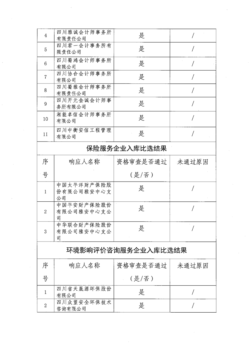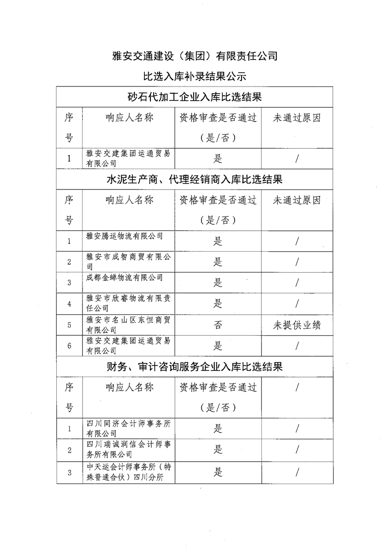 雅安交通建设(集团)有限责任公司比选入库补录结果公示