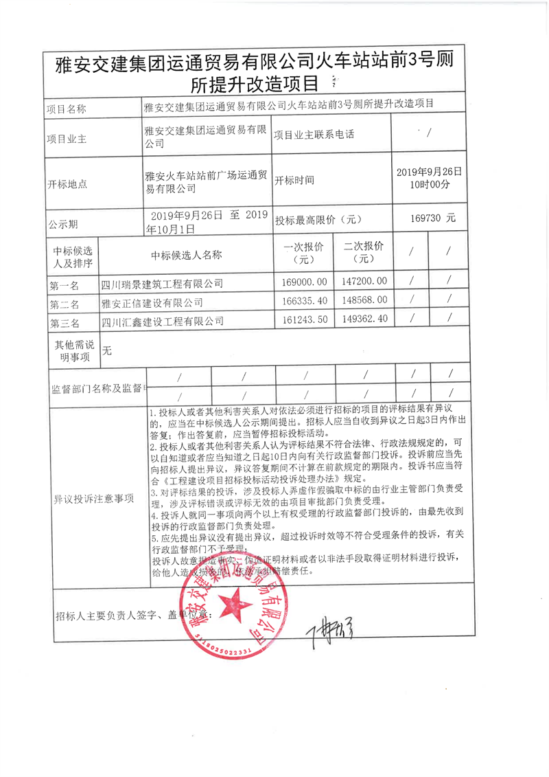 亿万先生MR集团运通贸易有限公司火车站站前广场3号厕所改造提升项目(第二次)竞争性谈判结果公示