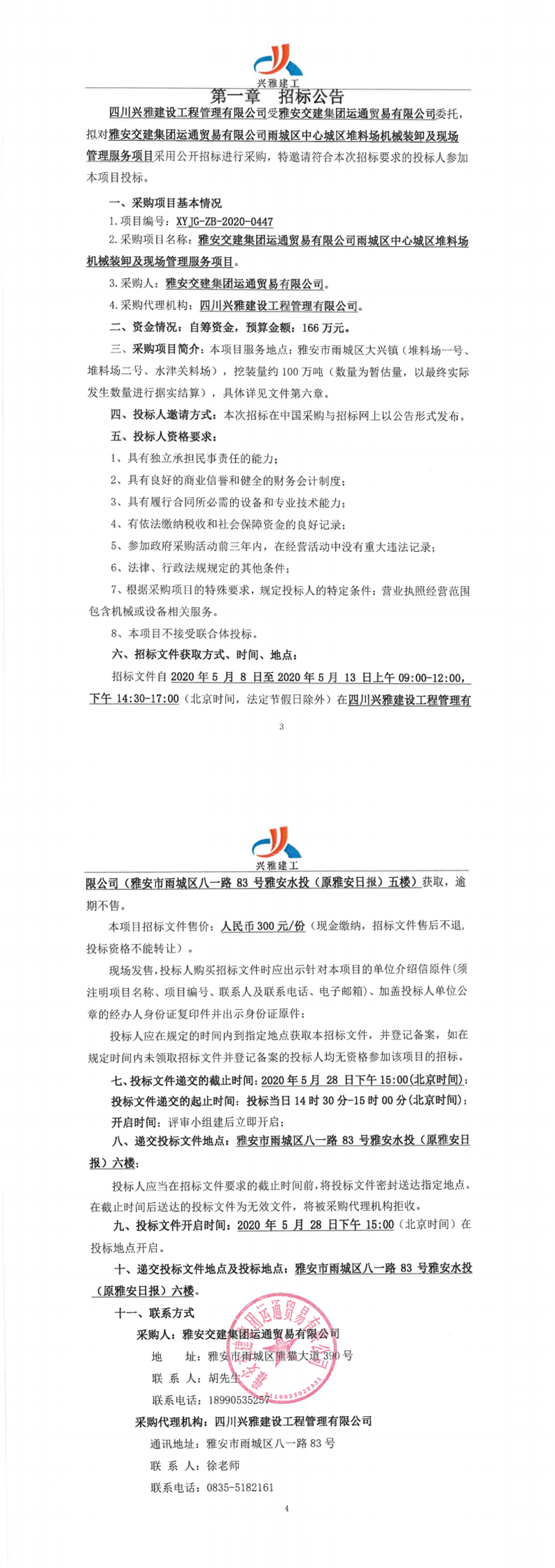 亿万先生MR集团运通贸易有限公司雨城区中心城区堆料场机械装卸及现场管理服务项目招标公告