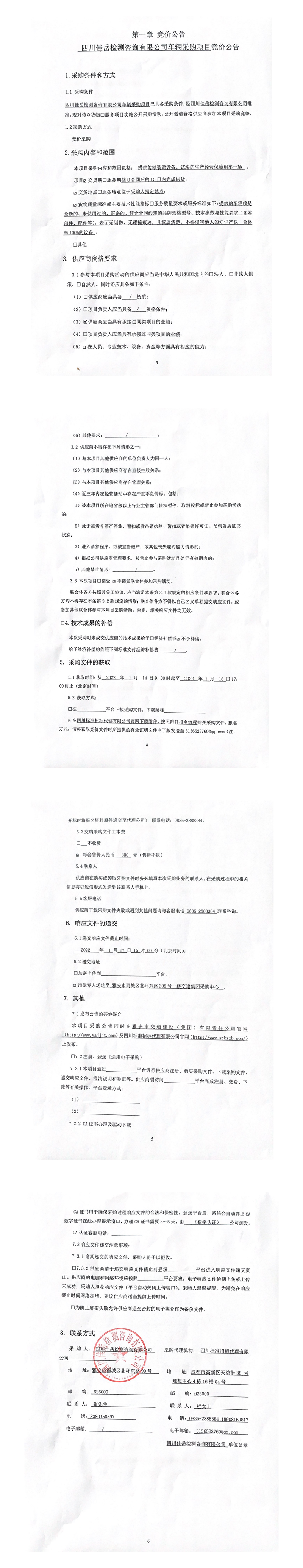 四川佳岳检测咨询有限公司车辆采购项目竞价公告