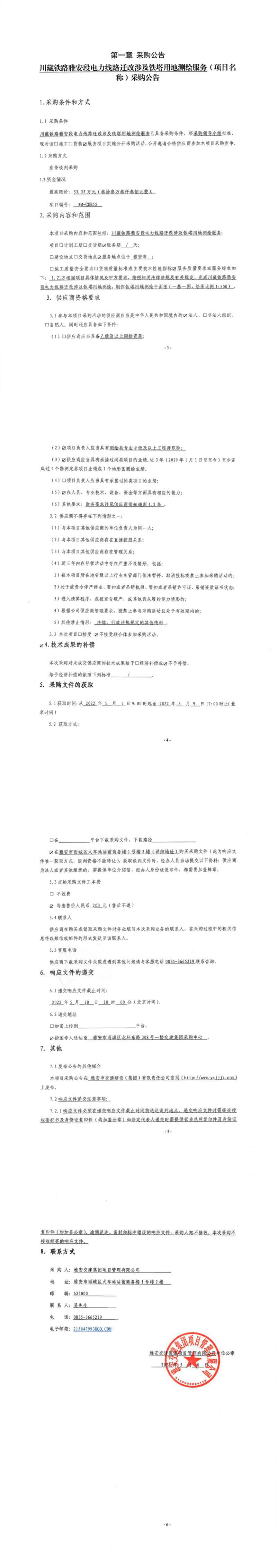 亿万先生MR集团项目管理有限公司川藏铁路雅安段电力线路迁改涉及铁塔用地测绘服务采购公告