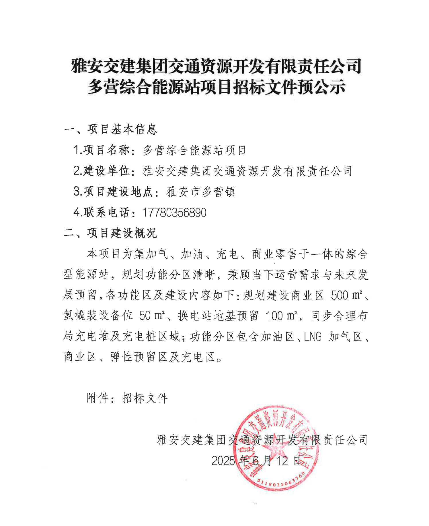 亿万先生MR集团交通资源开发有限责任公司多营综合能源站项目招标文件预公示