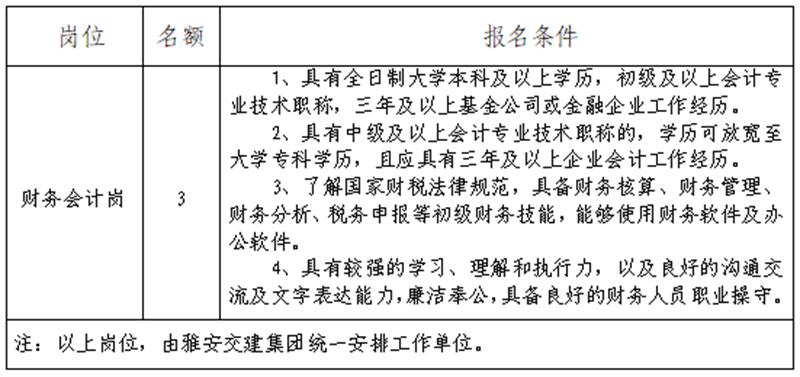 根据开展需要,决定面向社会公开招聘雅安市交通建设(集团)有限责任公司(以下简称“亿万先生MR集团”)所属子公司财务工作人员3名,现将有关事项公告如下: