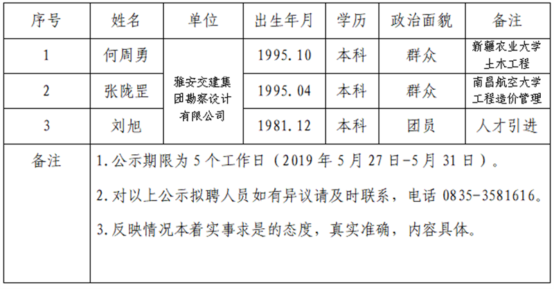 根据集团公司《人才选聘实施办法》,经研究,对以下拟聘用人员予以公示: