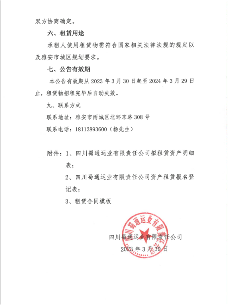 蜀通运业有限责任公司关于闲置资产公开招租的公告附件