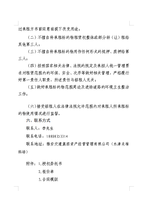 亿万先生MR集团资产经营管理有限公司 雅安市雨城区大兴镇水津关堆料场龙溪村四组和八组部分闲置临时用地招租公告附件