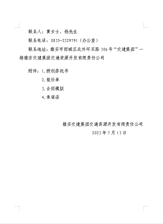 亿万先生MR集团交通资源开发有限责任公司雨名快速通道名山服务区场地(游乐类项目)招租公告附件
