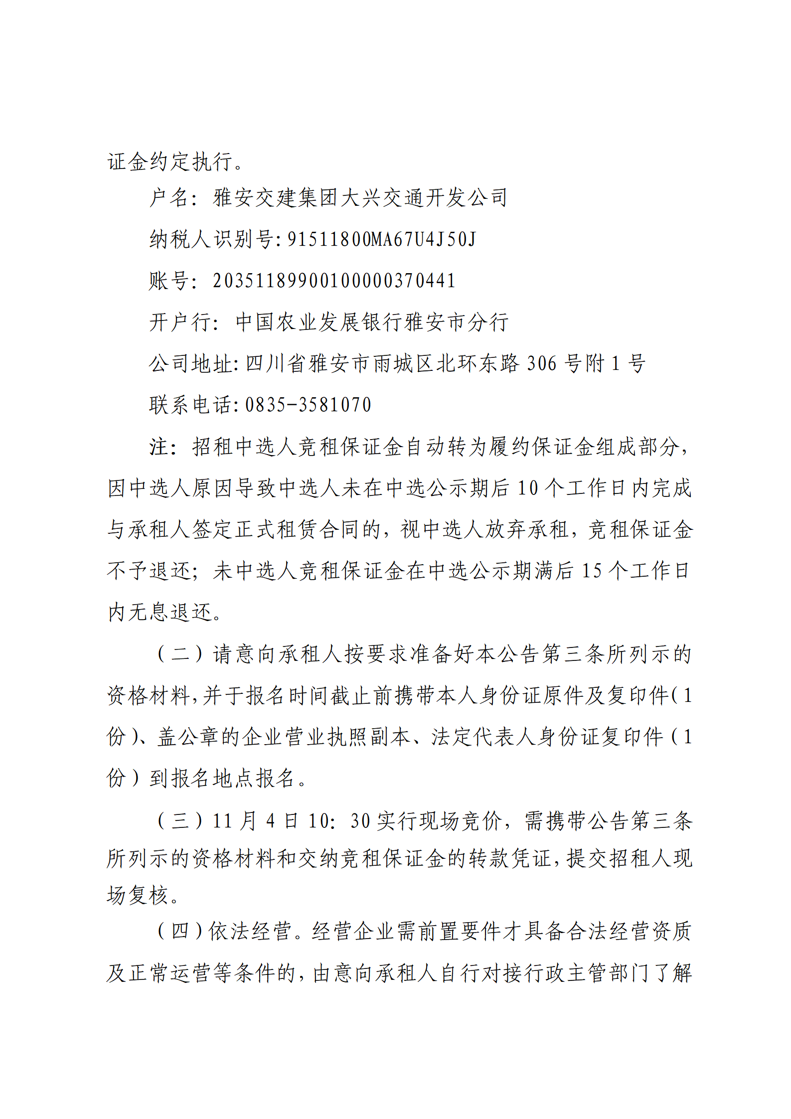 亿万先生MR集团大兴交通开发公司 雅安市城市综合停车场姚桥综合停车场及配套用房招租公告
