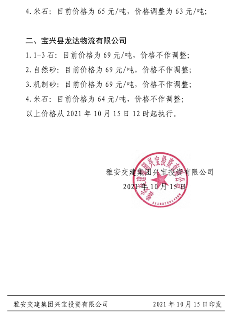 亿万先生MR集团兴宝公司关于调整成品料销售价格的通知(2021.10.15)
