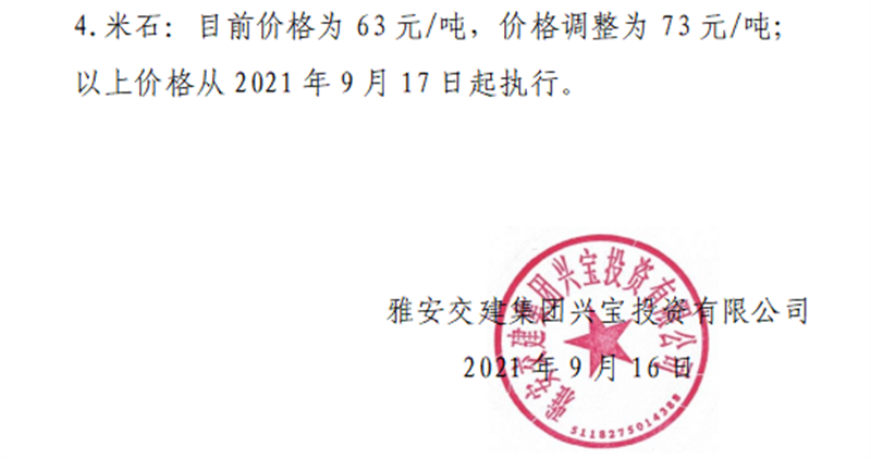 亿万先生MR集团云石公司关于调整成品料销售价格的通知(2021.9.13)