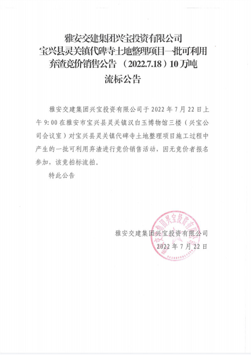 兴宝公司流标公告7.18(5万吨)