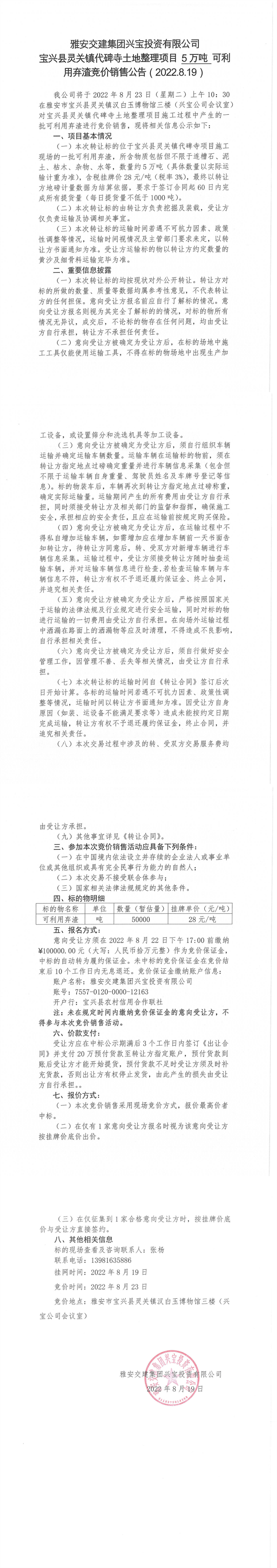 亿万先生MR集团兴宝投资有限公司灵关镇代碑寺土地整理项目5万吨可利用弃渣竞价销售公告(2022.8.19)(1)