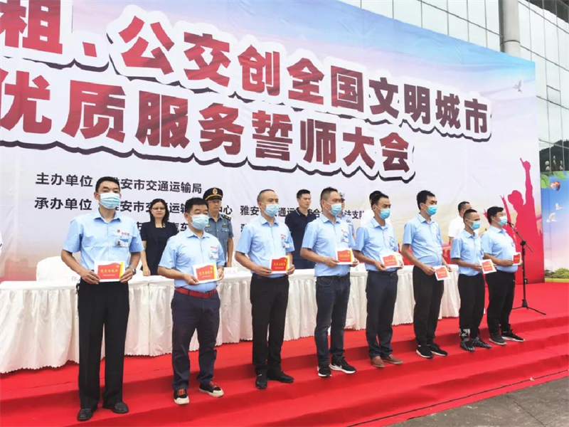 为进一步贯彻落实市委、市政府“争创第七届全国文明城市”决策部署和相关会议精神,以创建全国文明城市为契机,以建设“川藏铁路第一城、绿色开展示范市”为目标,以实际行动深化创建全国文明城市活动,进一步激发城市公共交通行业创建热情、凝聚创建活力。9月7日,雅安市召开出租、公交创全国文明城市暨优质服务誓师大会,动员全市广大公交、出租车驾驶员持续参与创城活动,全面召开以“争创文明公交、出租汽车党员示范车”为载体的行业文明创建活动。市交通运输局副局长龙兴出席会议并讲话。市创建办、市交通服务中心、市交警支队、市交通运输综合行政执法支队,交建集团公交公司、蜀通公司,雨城区、名山区交通运输局及出租车行业协会有关负责人和来自市区各公交出租汽车行业的46名党员驾驶员代表等参加会议。