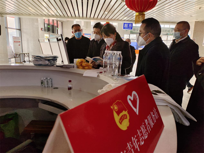彭映梅一行实地查看了雅安汽车客运站售票厅、安检区、候车厅、发车区等区域,详细分析了客运站安全生产、安保维稳、疫情防控、服务保障、运力安排、客流状况等工作情况。对车站春节安全管理及运输保障服务工作给予了充分的肯定,同时亲切慰问了一线工作人员。