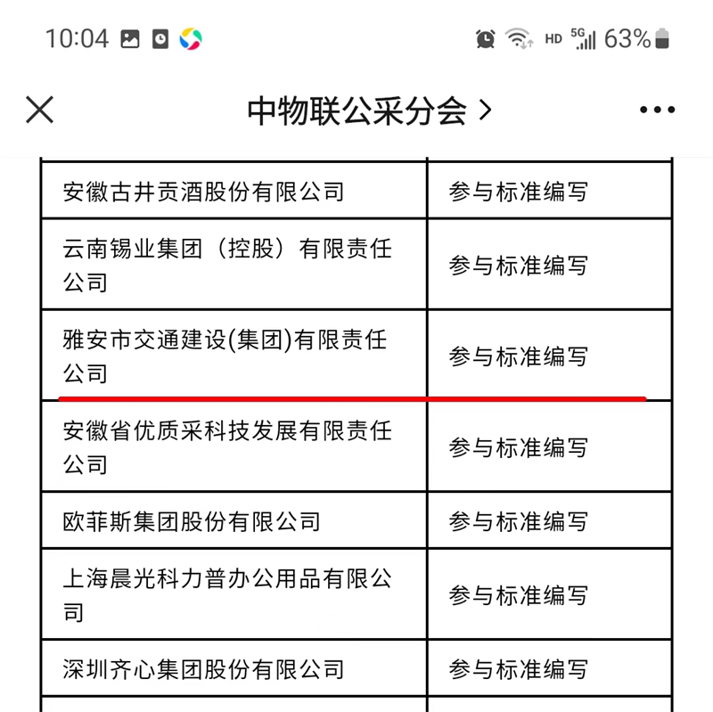 全国唯一 雅安市交通(建设)集团有限公司作为地方国企参与《国有企业采购 操作规范》团体标准编写