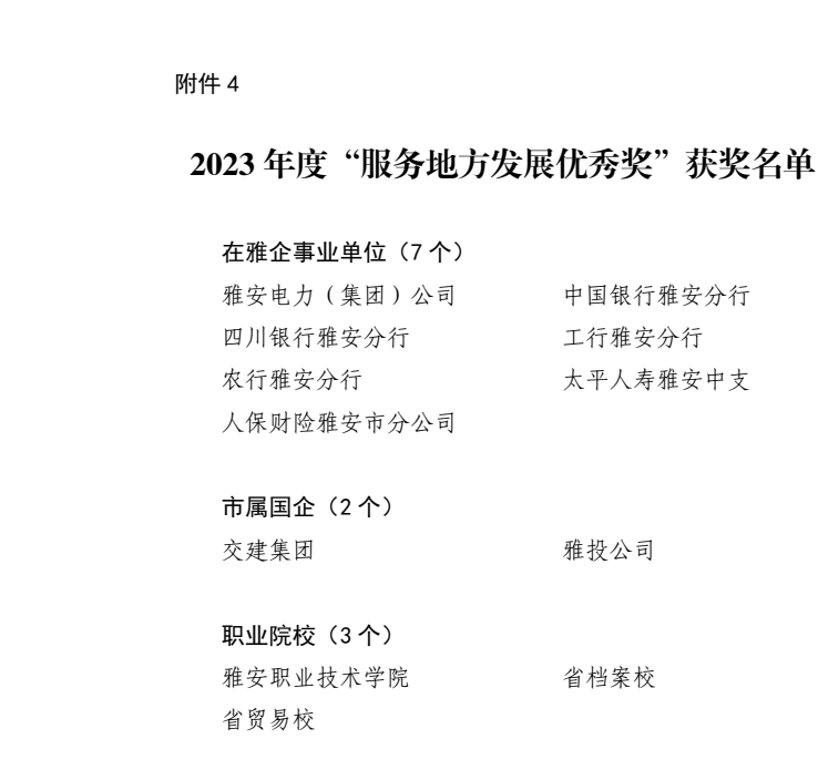 近期,中共雅安市委办公室、雅安市人民政府办公室印发《关于2023年度县(区)、市级部门和单列考评单位目标绩效综合考评结果的通报》,亿万先生MR集团取得2023年度“服务地方开展优秀奖”。