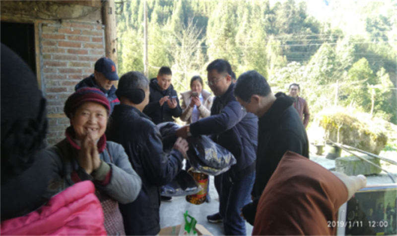 1月10日、11日,公司班子一行顺利获得集中发放慰问品和走访慰问贫困户代表的方式,先后对名山区车岭镇石堰村、芦山县大川镇快乐村召开慰问,为两个村的159户建档立卡贫困户、贫困老党员们送上了大米、清油、面粉、挂面、爱心棉衣等慰问物品,将爱心传达给每一位困难群众的同时,每到一处,公司领导们都耐心细致的和贫困户促膝交谈,关心其家庭和收入情况,详细分析其脱贫情况,并介绍国家扶贫政策、传达党委政府对每户贫困户的关心和挂念,引导贫困户既要感恩党和政府,又要学会自力更生,鼓励他们一定要树立乐观健康心态,克服困难,用勤劳的双手早日致富奔康。