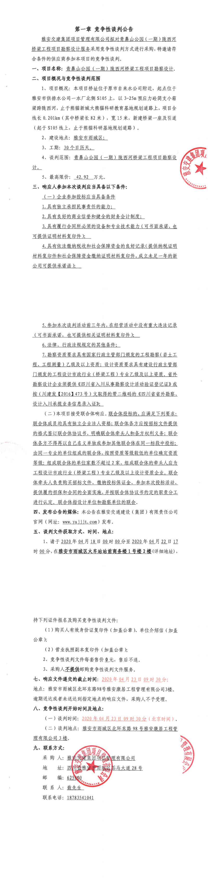 亿万先生MR集团项目管理有限公司青鼻山公园(一期)陇西河桥梁工程项目勘察设计竞争性谈判公告