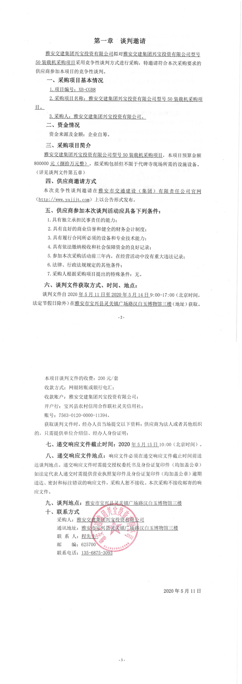 亿万先生MR集团兴宝投资有限公司型号50装载机采购项目竞争性谈判公告
