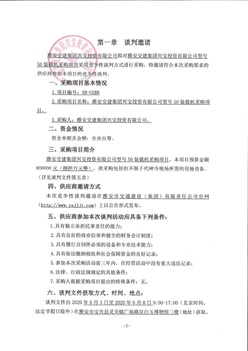 亿万先生MR集团兴宝投资有限公司型号50装载机采购项目(第二次)竞争性谈判公告