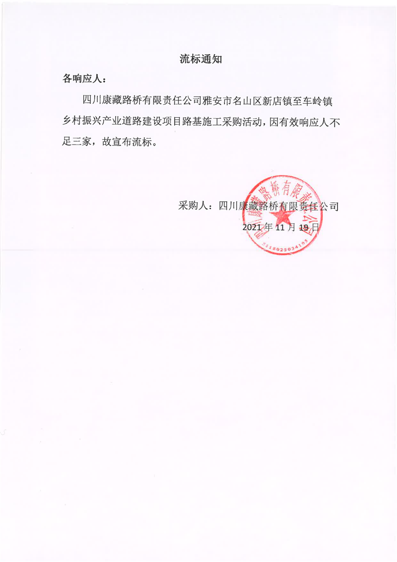 四川康藏路桥有限责任公司雅安市名山区新店镇至车岭镇乡村振兴产业道路建设项目路基施工采购公告