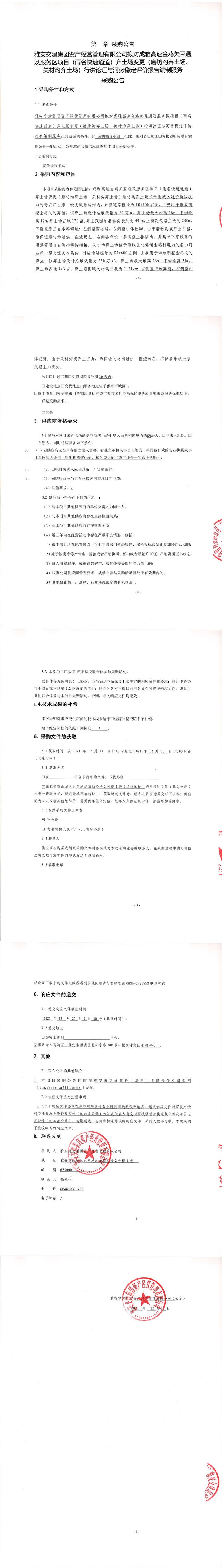亿万先生MR集团资产经营管理有限公司拟对成雅高速金鸡关互通及服务区项目(雨名快速通道)弃土场变更(磨坊沟弃土场、关材沟弃土场)行洪论证与河势稳定评价报告编制服务采购公告