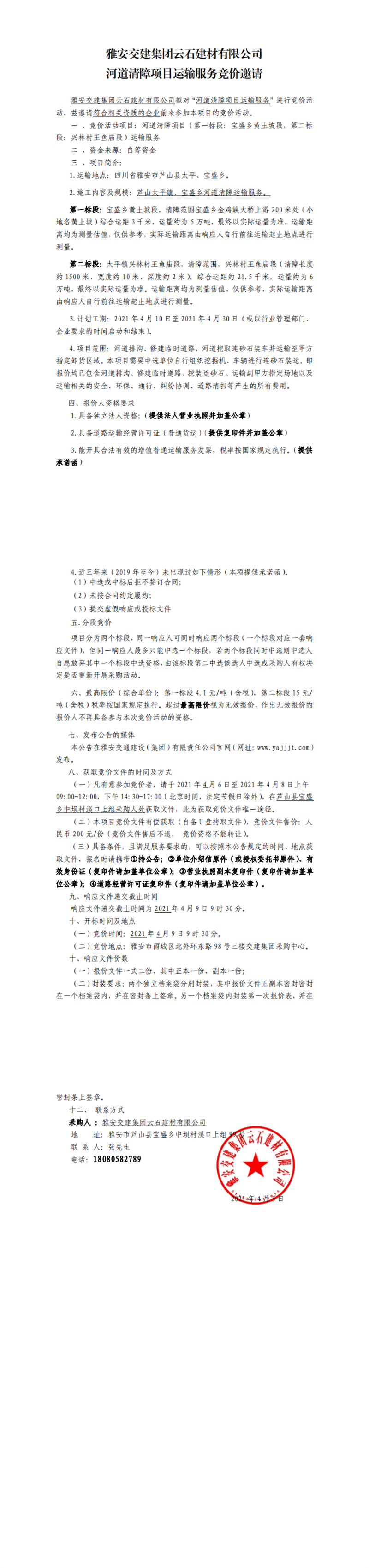 亿万先生MR集团云石建材有限公司河道清障项目运输服务竞价公告