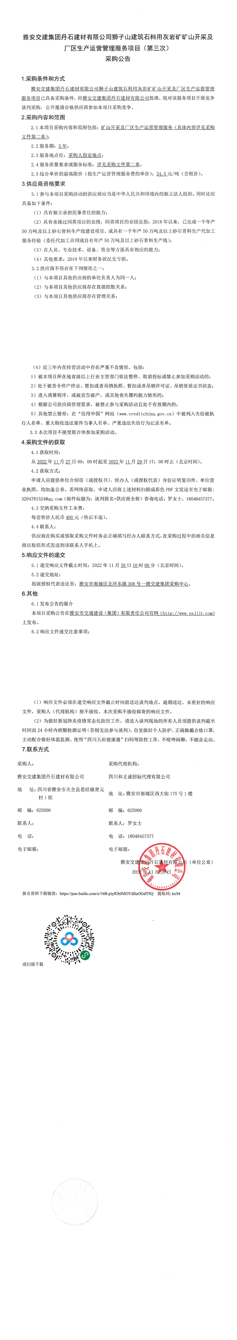 亿万先生MR集团丹石建材有限公司狮子山建筑石料用灰岩矿矿山开采及厂区生产运营管理服务项目(第三次)采购公告