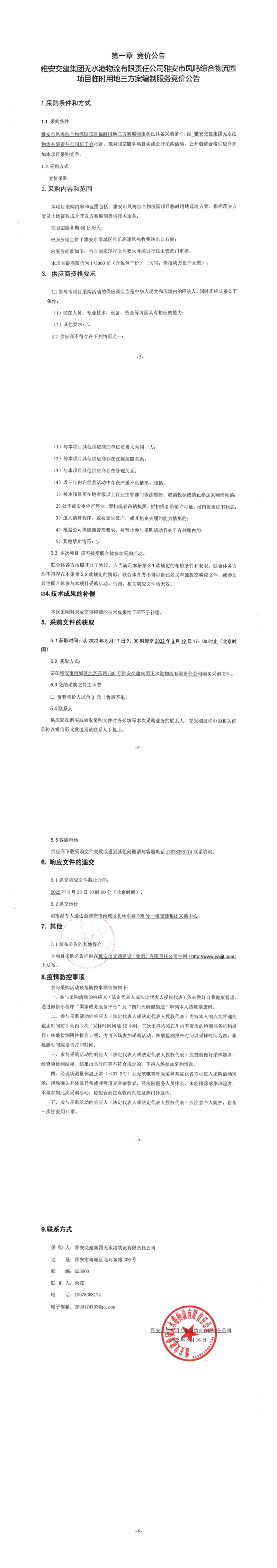 亿万先生MR集团无水港物流有限责任公司雅安市凤鸣综合物流园项目临时用地三方案编制服务竞价公告