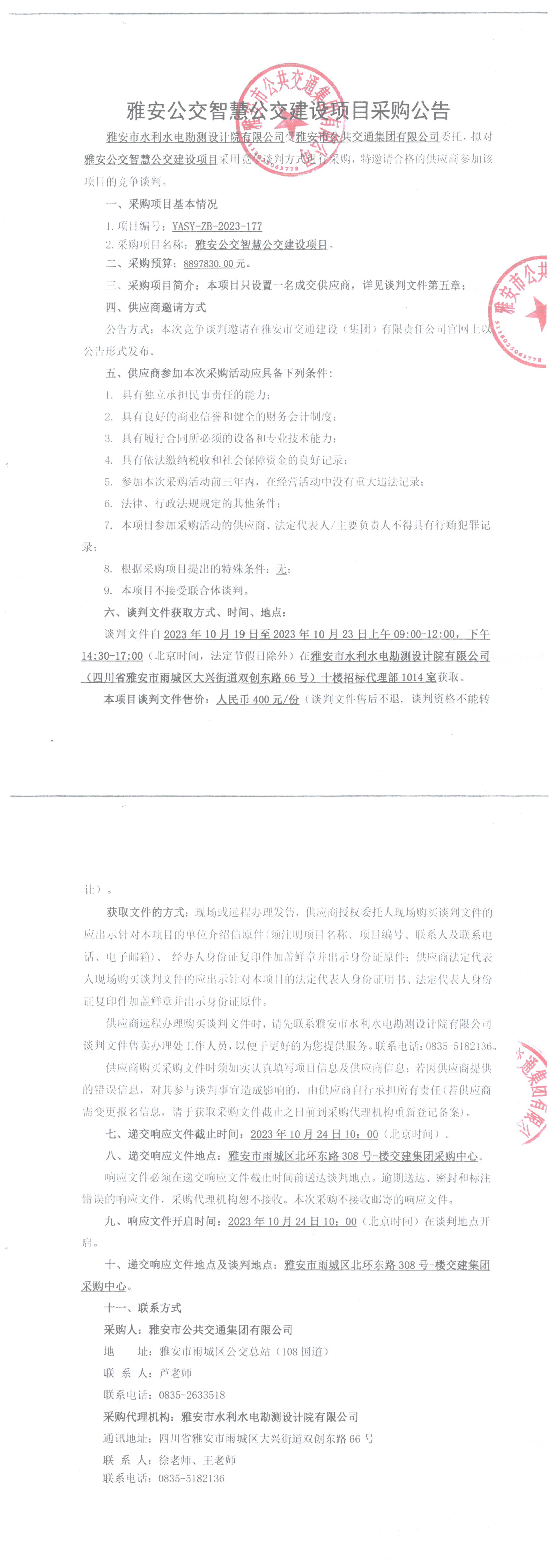 雅安市公共交通集团有限公司雅安公交智慧公交建设项目采购公告