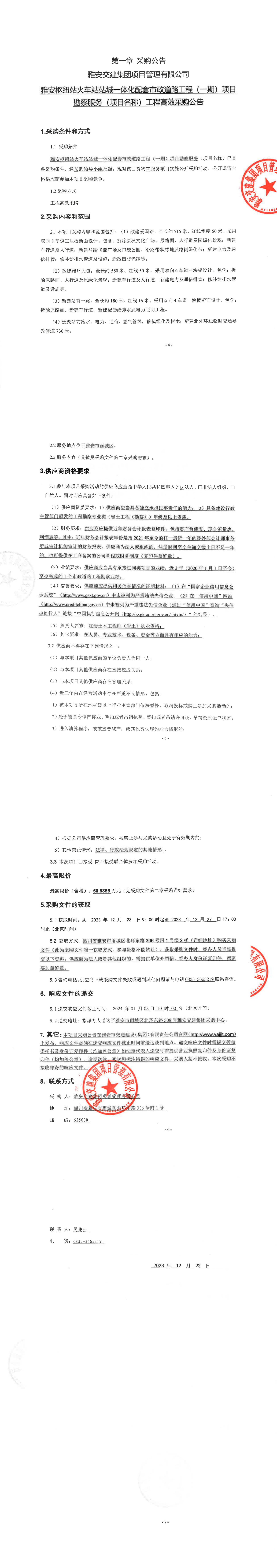 亿万先生MR集团项目管理有限公司雅安枢纽站火车站站城一体化配套市政道路工程(一期)项目勘察服务(项目名称)工程高效采购公告