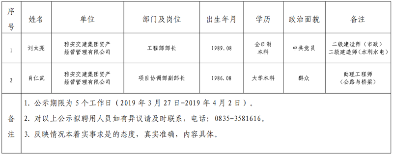 面试等程序,经研究,对以下拟聘用人员予以公示: