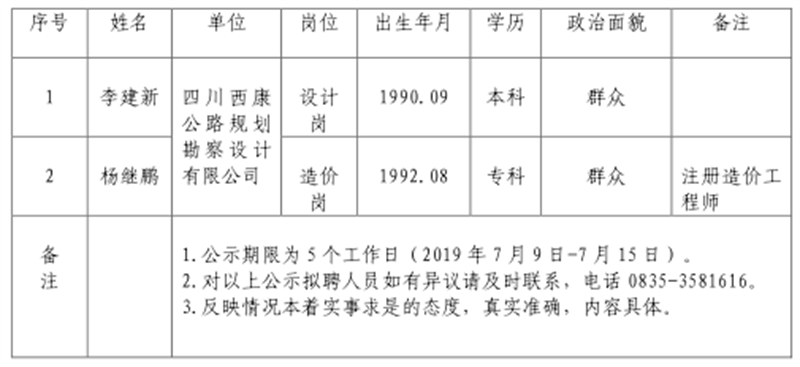 对以下拟聘用人员予以公示: