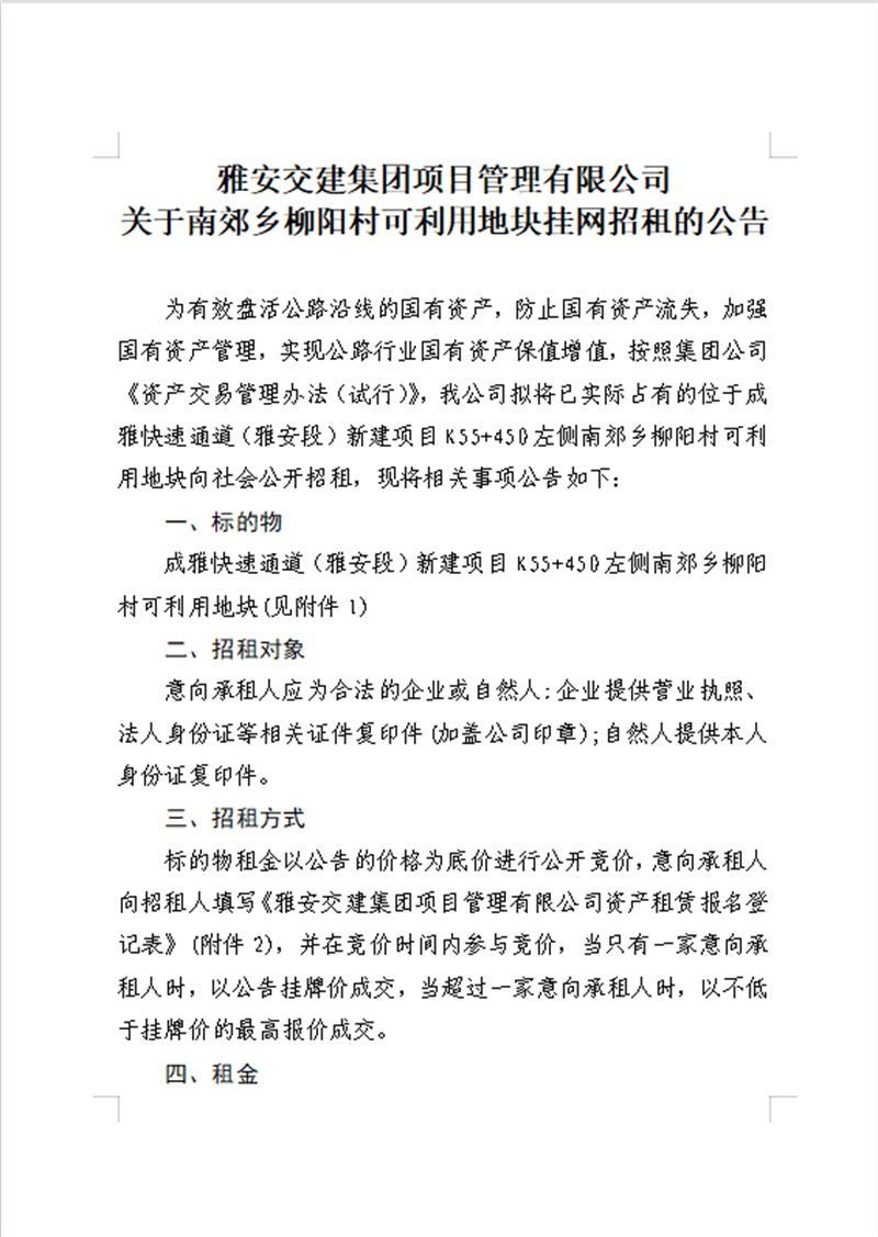 亿万先生MR集团项目管理有限公司关于南郊乡柳阳村可利用地块公开招租的公告