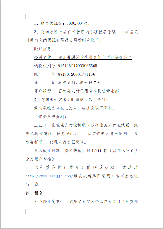 蜀通运业有限责任公司关于闲置资产公开招租的公告
