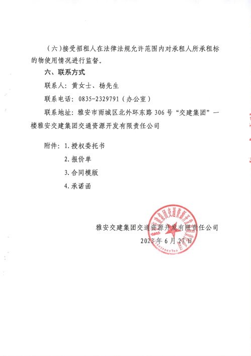 亿万先生MR集团交通资源开发有限责任公司雨名快速通道名山服务区1号楼招租公告附件