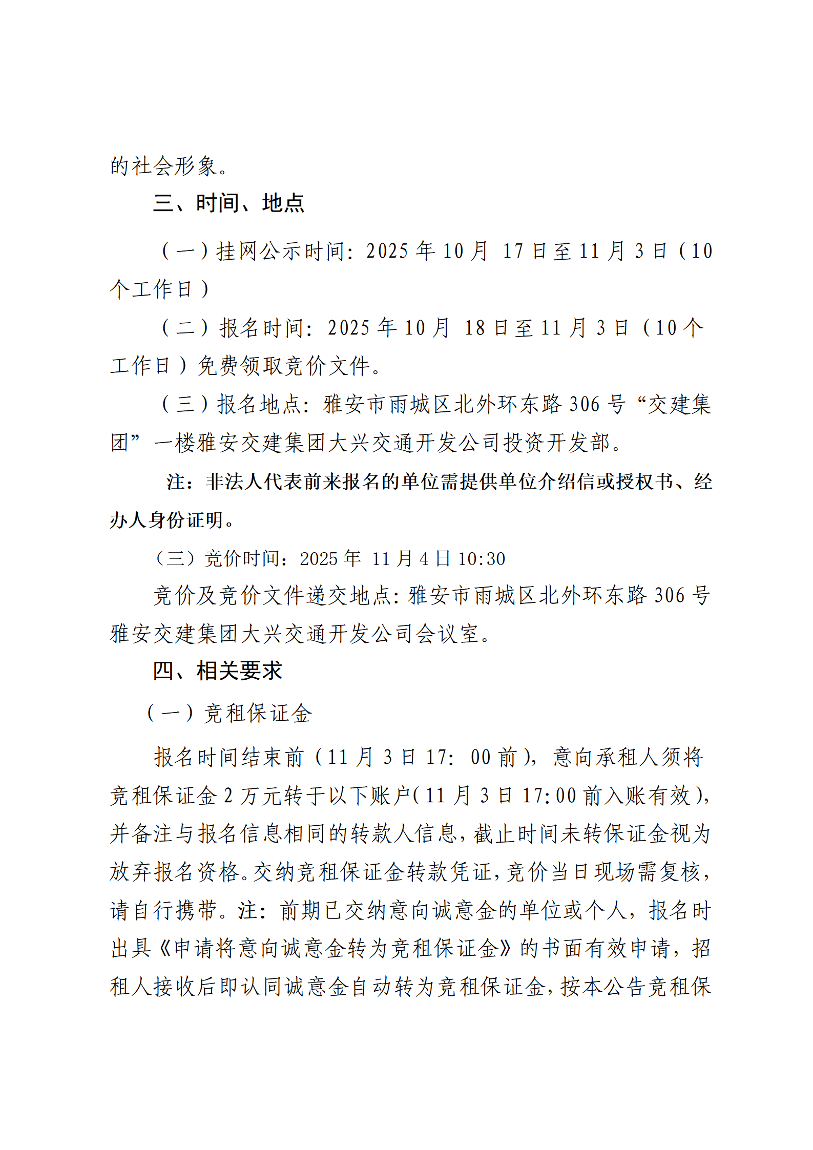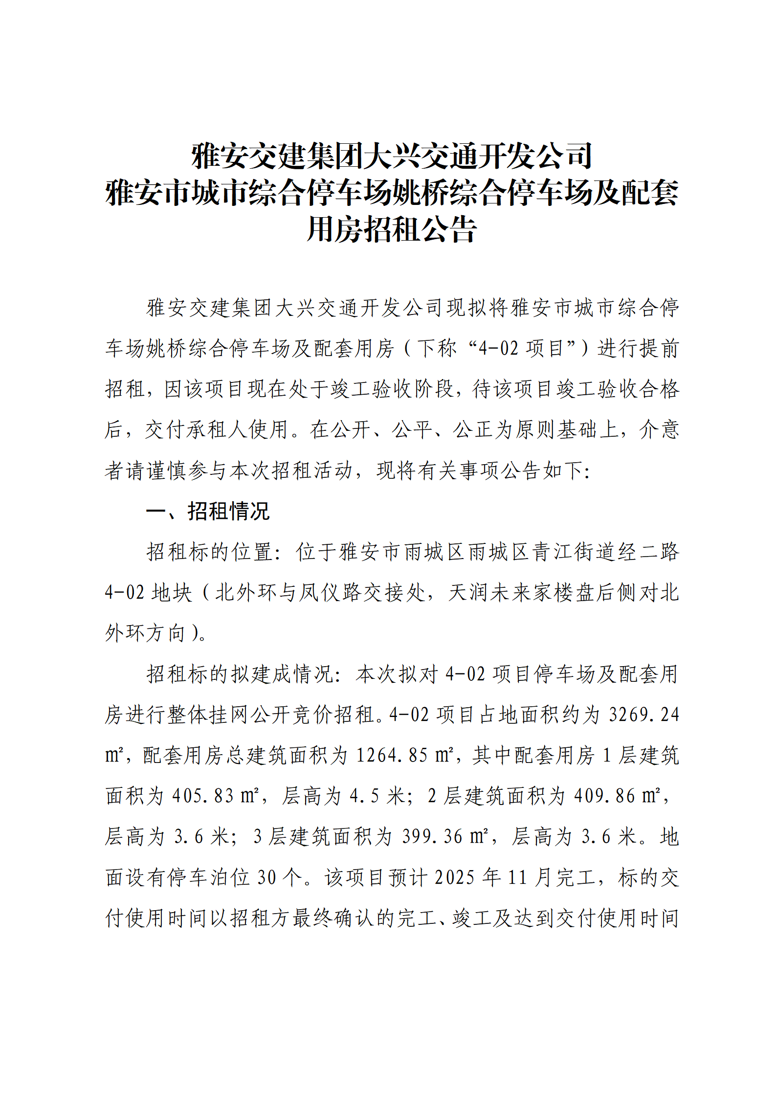 亿万先生MR集团大兴交通开发公司 雅安市城市综合停车场姚桥综合停车场及配套用房招租公告