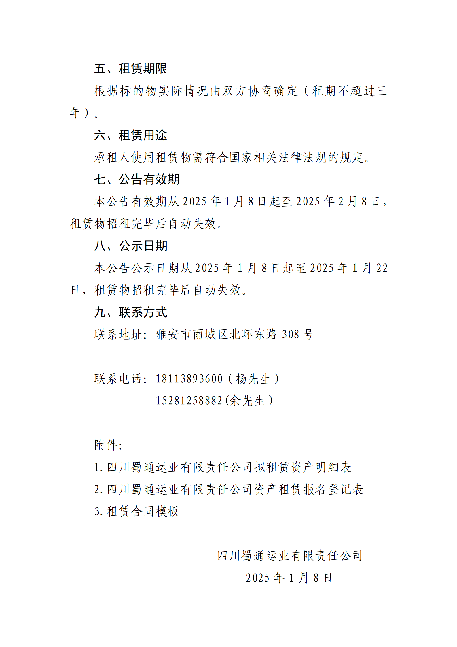 四川蜀通运业有限责任公司 关于宝兴县沿江路140号、穆坪南街16号、18号三间商铺进行挂网招租的公告
