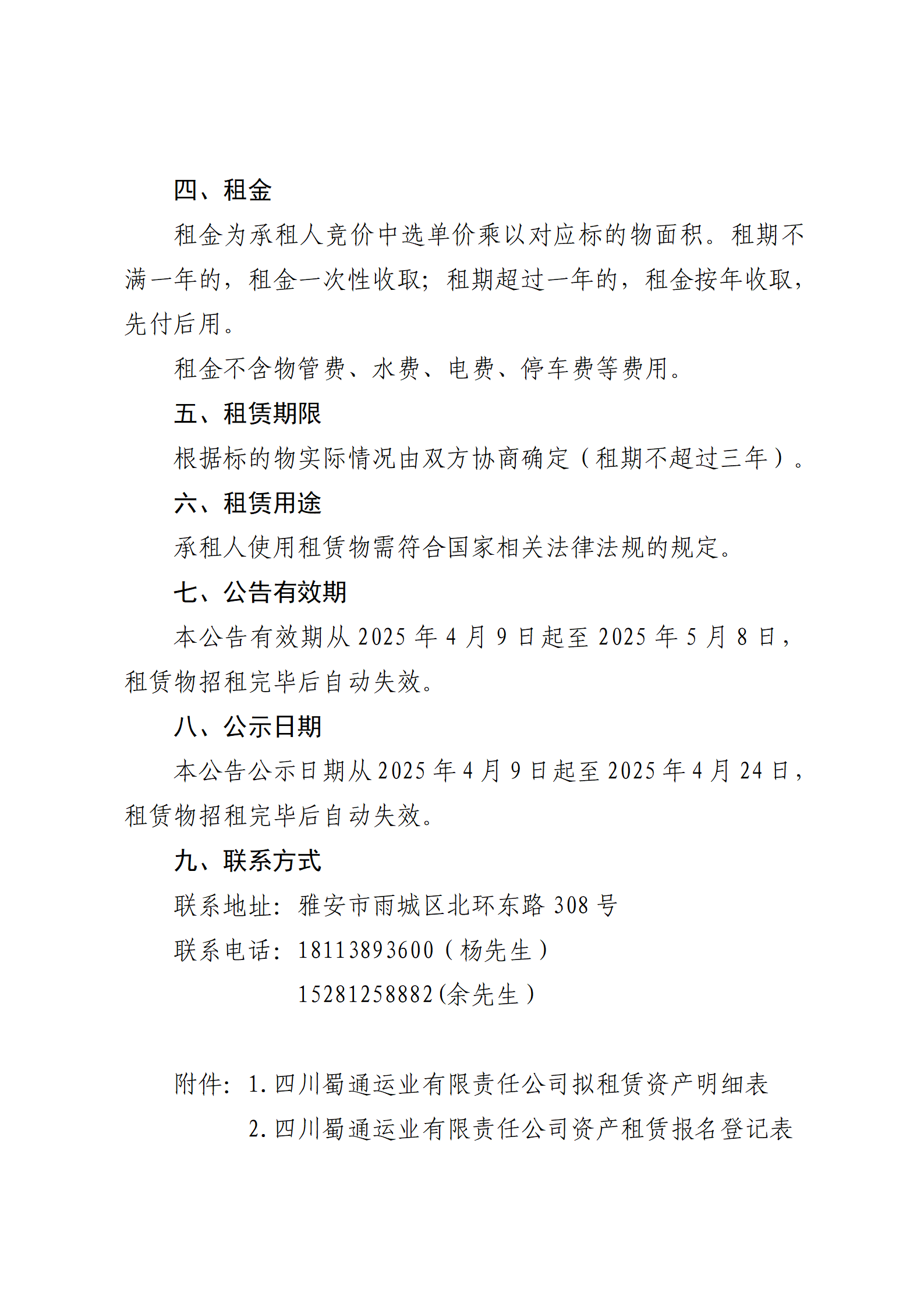 四川蜀通运业有限责任公司 关于康藏路261号附22号、平安路30号两处门面、汉源汽车站二楼闲置房屋进行挂网招租的公告