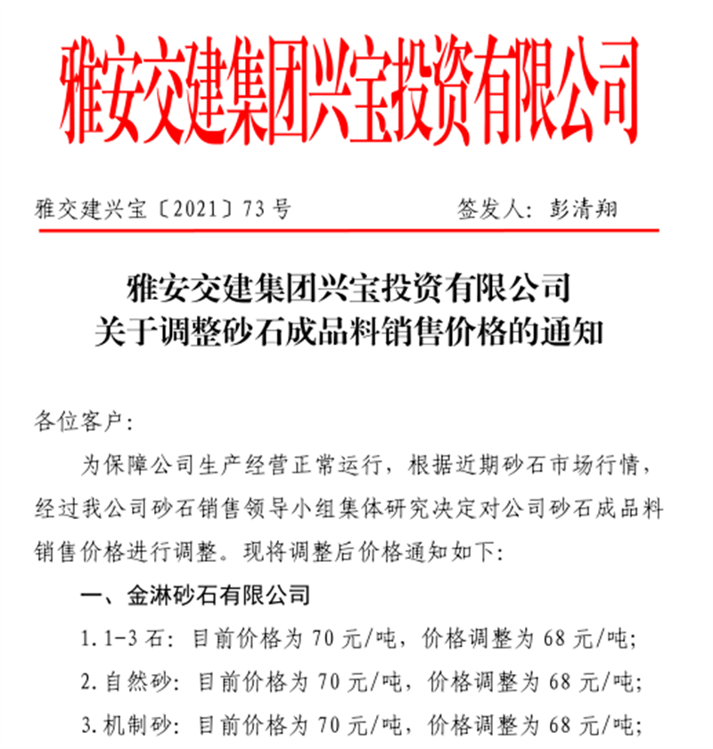 亿万先生MR集团云石公司关于调整成品料销售价格的通知(2021.11.4)