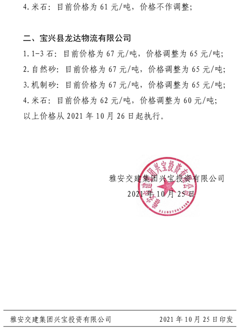 亿万先生MR集团兴宝公司关于调整成品料销售价格的通知(2021.10.26)