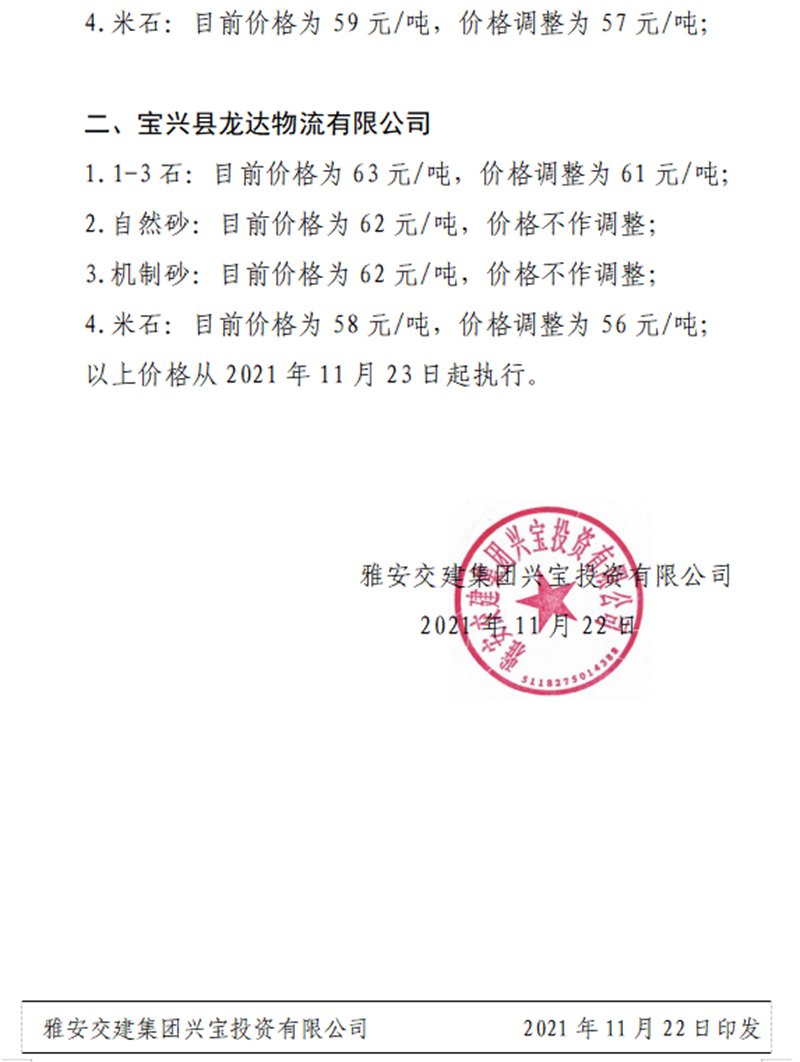 亿万先生MR集团兴宝公司关于调整成品料销售价格的通知(2021.11.26)