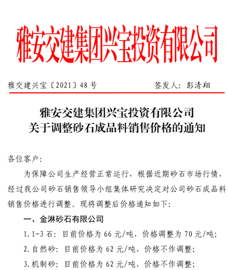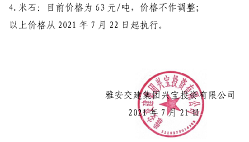 亿万先生MR集团兴宝公司砂石骨料销售价格情况表(2021.7.22)