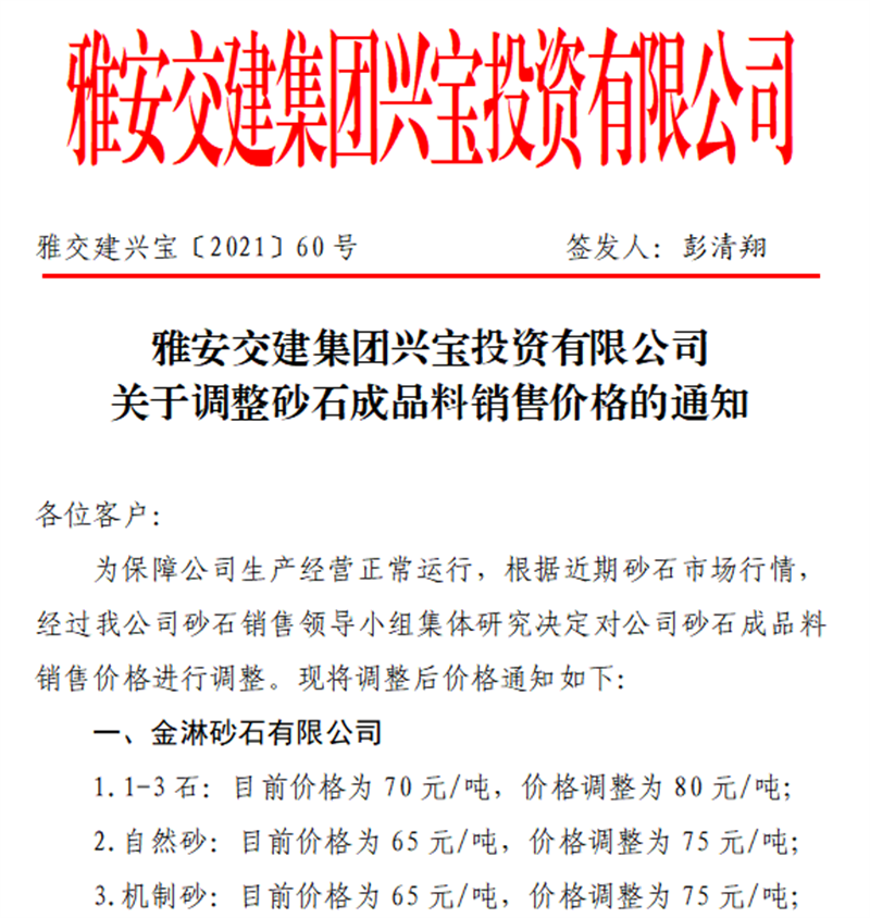 亿万先生MR集团云石公司关于调整成品料销售价格的通知(2021.11.4)