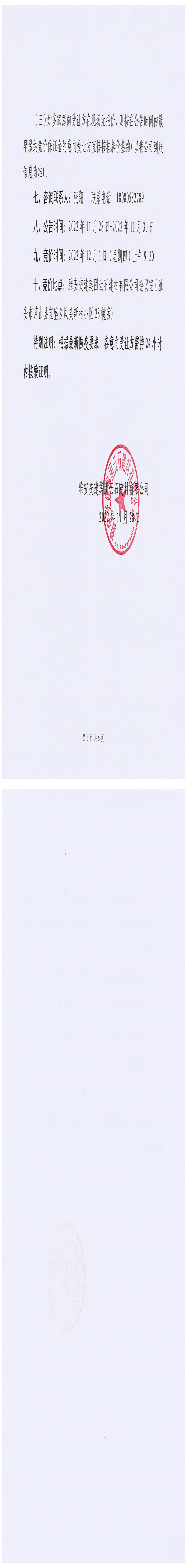 雅交建云石建材有限公司成品料竞价销售公告-2022-11-28